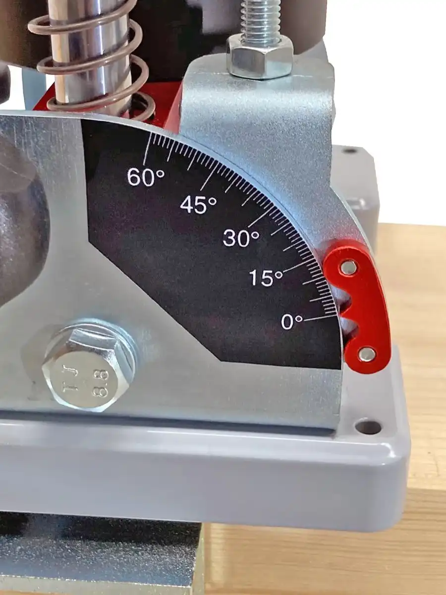 Der Bohrständer bietet eine herausragende Kombination aus Präzision und Stabilität – ideal für tiefe Bohrungen. Die robuste Konstruktion mit hartverchromten Führungswellen und CNC-gefräster Grundplatte gewährleistet saubere, exakte Bohrlöcher. Der Tiefenanschlag ist auf einer separaten Welle angebracht, wodurch kein Klemmen auf der Führungswelle entsteht. Eine grosse Winkelskala bis 60° und der Seitenanschlag ermöglichen einfache und präzise Einstellungen. Dieses Werkzeug ist unverzichtbar für den professionellen Einsatz.